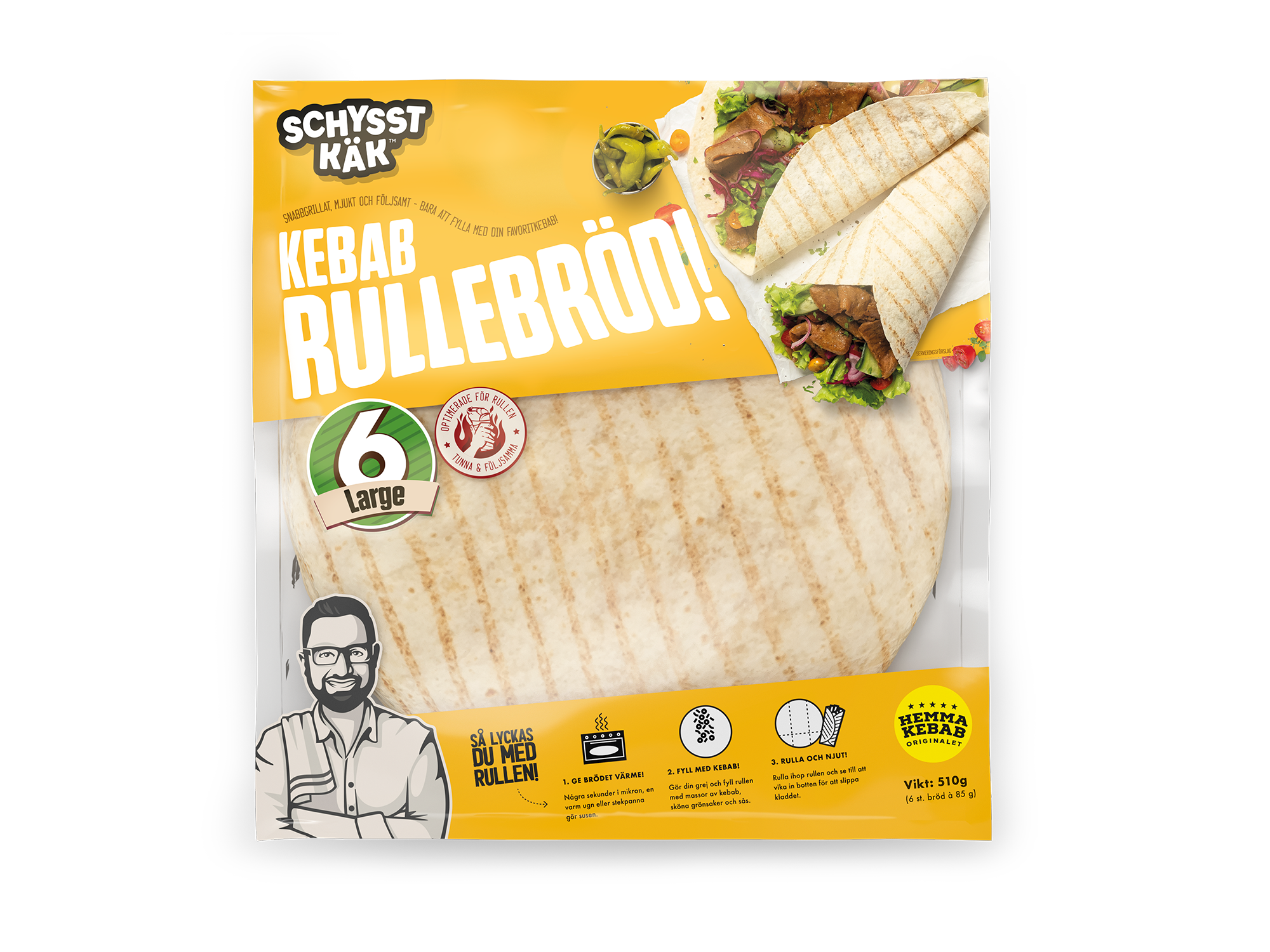 Komplettera kebabkonceptet med pitabröd och kebabrullebröd i brödhyllan och gör hemmakebaben komplett.